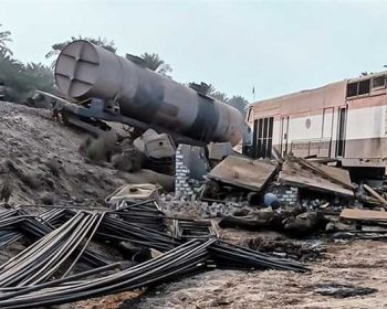 لودر يتسبب في انقلاب قطار بضائع بالبدرشين والونش سقط في الترعة