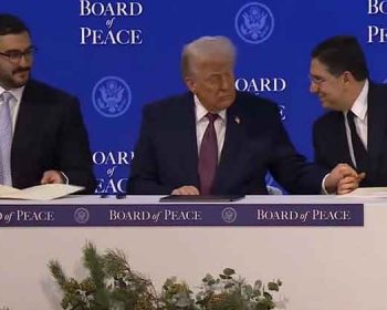 في دافوس، وقع الرئيس الأمريكي دونالد ترامب الجمعة الميثاق التأسيسي لمجلس السلام وسط مخاوف من أن يشكل منافسا لمجلس الأمن، فيما قال ترامب إنه سيعمل “بالتنسق” مع الأمم المتحدة. ويُشترط على الأعضاء الدائمين في المجلس دفع مليار دولار للانضمام، مما أثار انتقادات.  قام الرئيس الأمريكي دونالد ترامب الخميس بتوقيع في الميثاق التأسيسي لـ“مجلس…