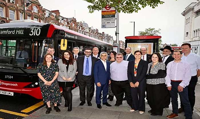 أطلقت هيئة النقل في لندن خدمة حافلات عامة جديدة تربط بين منطقتين في العاصمة تَضُمَّانِ أعدادًا كبيرة من سكان الجالية اليهودية، لتعزيز شعورهم بالأمان، وفق ما أعلن عمدة لندن. وقد ذكرت هيئة الإذاعة البريطانية العمومية (بي بي سي) أنّ عمدة لندن، صادق خان قال: “إنّه يجب أن نكون حلفاء جيدين لأصدقائنا وجيراننا من الطائفة اليهودية” وقد عبّر عن مدى تأثره “بالخوف الذي يشعر به اليهود الذين أخبروه أنهم تعرضوا للإساءة عند تغيير الحافلات للتنقل بين المنطقتين”.