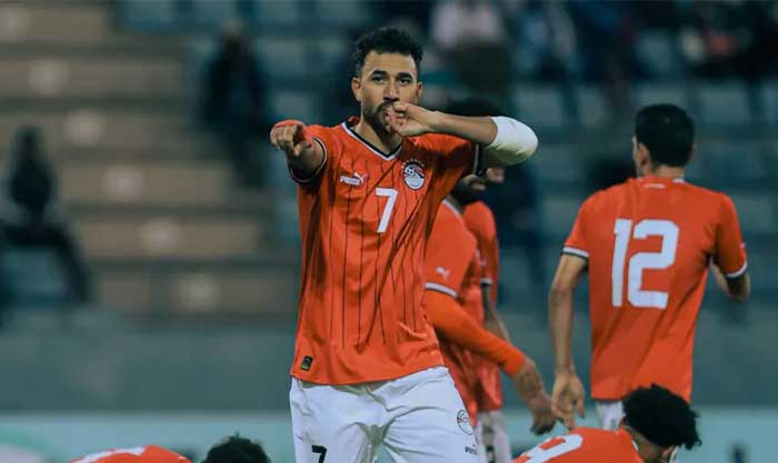 وتقدم المنتخب المصري بالهدف الأول في الدقيقة الخامسة من توقيع محمود تريزيغيه.وفي الدقيقة 29 عاد تريزيغيه المنضم حديثا للريان القطري، لهز الشباك وإضافة الهدف الثاني لمصر.