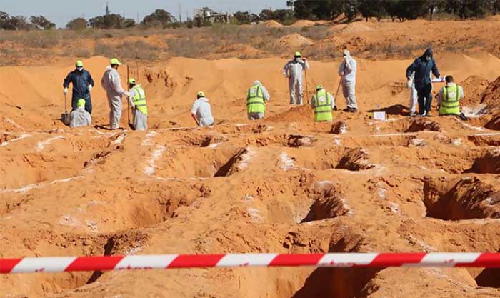 يذكر أن المقابر الجماعية في ترهونة اكتشفت بعد عملية عسكرية فاشلة للسيطرة على طرابلس استمرت 14 شهرا.