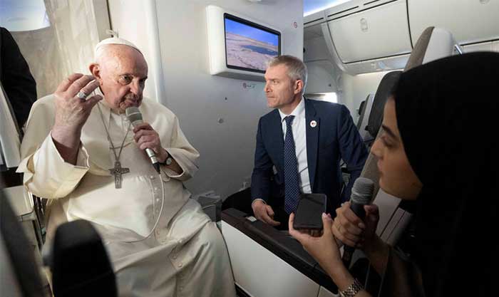 ولم يذكر فرنسيس إسرائيل بالاسم، لكنه قال إنه يدلي بتصريحات عامة، قائلا “الدفاع يجب أن يكون دائما متناسبا مع الهجوم”.