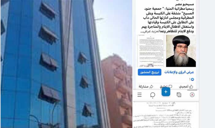 طبعا لما ابتدينا نطالب بحق الملجأ ورفضنا الاستسلام قرر الانبا مكاريوس انه يطلع بيان اننا منشقين وبيمنع الشعب القبطى من التعامل معنا دى قضية رفعها محاموا المطرانية المنيا بفسخ عقد الايجار وطرد الملجا بما فيه من اطفال والقضية بأسم البابا تاوضروس. دى دعوى سب وقذف رفعوها ضدى وضد محامى الجمعية علشان يضغطوا عليا انى اتنازل عن دورن الملجأ ويلغوا الدعوى
