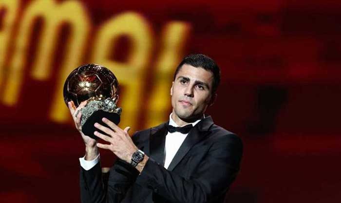 تُوج لاعب وسط مانشستر سيتي الإنجليزي، رودري، بجائزة الكرة الذهبية لأفضل لاعب في العالم 2024. وحظي لاعب الوسط بموسم مميز بعد أن حصد لقب الدوري الإنجليزي الممتاز مع مانشستر سيتي قبل الفوز ببطولة يورو 2024 مع إسبانيا في الصيف.