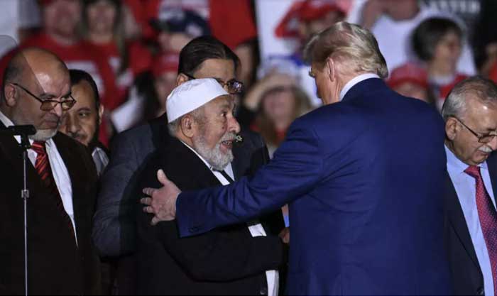 وقال ترامب بأنه أجرى اجتماعا في وقت سابق مع القادة المسلمين في الولاية، ودعا الإمام بلال الزهيري الذي أثنى على المرشح الجمهوري في جهوده للسلام ووصفه أمام الحضور، الذين تحمسوا بالتصفيق ب”مرشح السلام”.