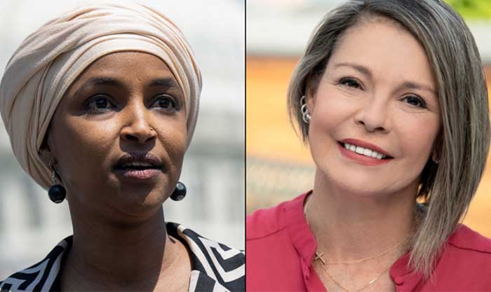 ففي الوقت الذي تنتقد فيه عمر إسرائيل على خلفية حربها ضد حماس التي خلفت عشرات المئات من القتلى من الفلسطينيين، تعلن العقيدي عداءها الصريح لحماس وتحملها مسؤولية ما حدث.  تتبنى إلهان عمر، التي جاءت إلى الولايات المتحدة لاجئة، وجهات نظر تتقاطع مع أفكار الحزب الديموقراطي، وبخاصة في ما يتعلق بشؤون الهجرة.
