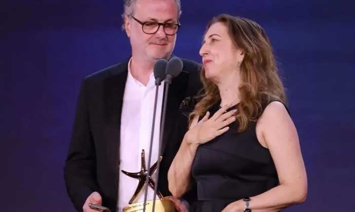 وبعد استلام الجائزة قالت جوانا حاجي توما :”تكريمنا اليوم بمهرجان الجونة وفي مصر شرف كبير، فنحن نشأنا على السينما المصرية، كما أننا لم نختر الطرق التقليدية للعمل، عملنا كثنائي بدون دراسة للفن أو السينما، ولكننا كنا مدفوعين بشغف كبير”.