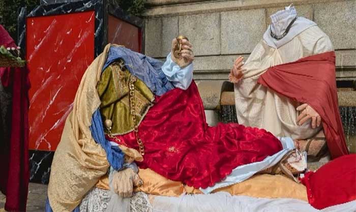 التماثيل المقطوعة الرأس هي تماثيل قلعة هيرودس. تم افتتاح مشهد المهد في 7 ديسمبر وسيستمر عرضه حتى 7 يناير. في عام 2021، تعرضت بعض التماثيل للهجوم والتدمير. ومنذ ذلك الحين، تم تركيب كاميرات مراقبة لمنع مثل هذه الأعمال والعثور على الجناة.