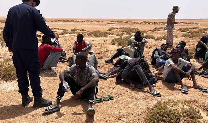 وأضافت المنظمة: صادرت القوات الليبية جميع ممتلكاتهم، بما في ذلك الهواتف والأموال. وتظهر الصور التي نشرتها منصة المساعدة على وسائل التواصل الاجتماعي مهاجرين منهكين يجلسون على الرمال، ويرتدي بعضهم أغطية أو أقمشة فوق رؤوسهم والبعض الآخر حافي القدمين.