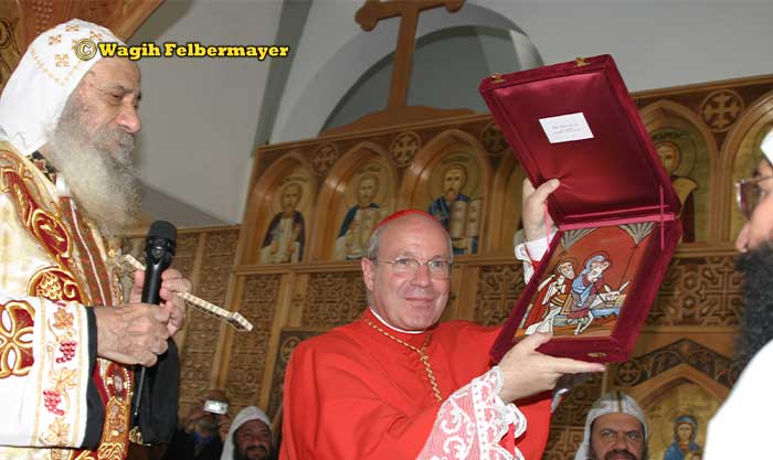 كانت هناك جسور محبة وعلاقات ود بين الاسقف الكاثوليكي والكنيسة القبطية الارثوذكسية وكان ضيفا على الكنيسة مرحبا بزيارة البابا شنودة الثالث عند تدشين كنيسة عذراء الزيتون في العاصمة فيينا حيث كان هناك احتفال كبير للجالية القبطية.