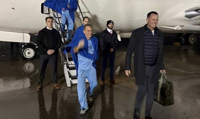 وكتب غرينيل على منصة التواصل الاجتماعي “إكس”: “نحن في طريق العودة إلى الوطن مع المواطنين الأمريكيين الستة، لقد تحدثوا للتو مع دونالد ترامب وأعربوا عن امتنانهم له“.