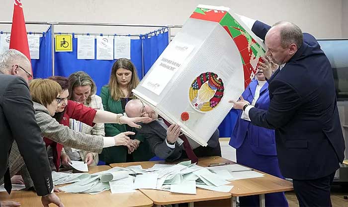 وبينما كان يدلي الناخبون بأصواتهم، أدانت المنسقة العليا للشؤون الخارجية للاتحاد الأوروبي، كايا كالاس، في منشور على منصة (إكس) ما اعتبرته “انتخابات صورية”، ووصفتها بأنها “إهانة صارخة للديمقراطية“. وفي الانتخابات الأخيرة عام 2020، منحت لجنة الانتخابات لوكاشينكو 80.1% من الأصوات، مع نسبة مشاركة بلغت 84.4%.