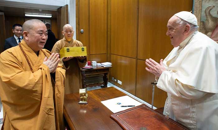 استقبل البابا فرنسيس وفدًا آخر من الرهبان البوذيين في 1 فبراير/شباط. هذه المرة، جاءوا من معبد شاولين في جبل سونغ في خنان بالصين. إنه مسقط رأس كونغ فو الشاولين والمركز الرئيسي لبوذية الزن. قبل أسبوعين، في 13 يناير/كانون الثاني، استقبل البابا فرنسيس وفدًا من الرهبان البوذيين، ثم من دير غاندانتيغتشينلين في أولان باتور في منغوليا.