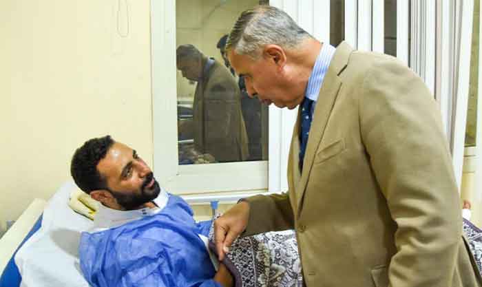 وخلال الزيارة، اطمأن المحافظ على استقرار الحالة الصحية للمصاب، ووجه بتوفير الرعاية الطبية المتكاملة له حتى تمام التعافي، كما وجّه بالتنسيق العاجل مع مديرية التضامن الاجتماعي لصرف إعانة مالية عاجلة لأسرة المصاب، وفقًا للضوابط المنظمة في حالات الكوارث والظروف الاستثنائية.
