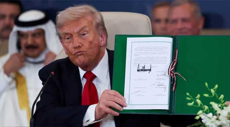 وأضاف ترامب أن الاتفاق يضع نهاية لـ”الكابوس الطويل والمؤلم” الذي عاشته المنطقة، مشيراً إلى أنه وقع وثيقة ضمان مشتركة مع قادة مصر وقطر وتركيا، دون الكشف عن تفاصيلها بعد.