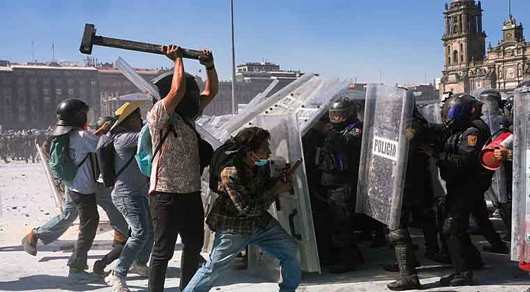 ومع أن المسيرة ظلت سلمية في معظمها، إلا أن مشاهد الفوضى برزت في ختام الاحتجاج، حيث قام شبان مقنّعون بإسقاط الحواجز الأمنية التي نصبتها الشرطة بالقرب من القصر الوطني، مقر إقامة الرئيسة شاينباوم، ما أدى إلى وقوع اشتباكات مع قوات مكافحة الشغب التي استخدمت الغاز المسيل للدموع لتفريق الحشود.