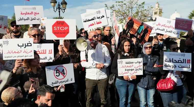 تظاهر صحافيون تونسيون، الخميس، قرب مقر رئاسة الحكومة في تونس العاصمة، في “يوم غضب”، مطالبين بوقف التضييق على الصحافة والحريات، والإفراج عن زملائهم المعتقلين، معتبرين أن “تصاعد القمع ضد الصحافة لن يخمد الأصوات الحرة“. وينظر لهذا الاحتجاج على نطاق واسع على أنه صيحة فزع ضد الضغوط، والتهديدات القوية التي تواجه حرية الصحافة، وهي مكسب رئيسي ناله التونسيون بعد ثورة 2011 التي أطاحت بالرئيس السابق زين العابدين بن علي، وأطلقت شرارة ما يعرف بـ “الربيع العربي“.