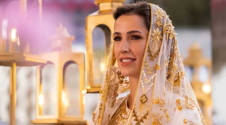 وقد ارتدت الأميرة رجوة الحسين للمناسبة العباية الزرقاء المطرزة بخيوط فضية ورمادية؛ تجسد رسوماً تراثية ومنفذة بتقنية حرفية اشتهرت بها المصممة المحلية إيمان الأحمد، التي تكرم التراث والتطريز الحرفي في عباياتها. وقد عبرت المصممة، عبر حسابها على إنستغرام وتحديداً على خاصية ستوري، عن فخرها وسعادتها؛ باختيار الأميرة من تصاميمها، وقد حملت الأميرة رجوة الحقيبة، التي تشبه المحفظة المستطيلة المنمقة والمزودة بسلسال معدني فضي، على كتفها، وهو من تصميم دار فالنتينو Valentino.