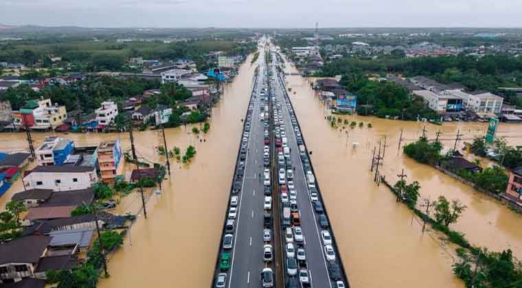 ضرب إعصار شديد اليوم (الثلاثاء) جنوب تايلاند، ووصفته السلطات بأنه “حدث لم يحدث منذ 300 عام”. وأدى الطقس العاصف إلى هطول أمطار غزيرة وفيضانات تجاوزت مترين، مما أسفر عن مقتل 19 شخصًا على الأقل بسبب الصعق الكهربائي وأضرار الطقس.