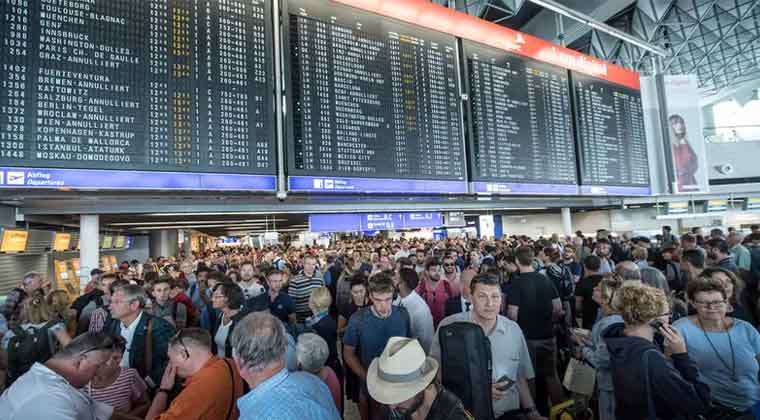 شهد مطار كولونيا/بون الألماني من جديد واقعة اندفاع ركاب متأخرين إلى ساحة الطائرات في المطار الواقع غربي ألمانياللحاق بطائرتهم قبل إقلاعها.وبعد أن فتح مواطنان رومانيان يوم الجمعة الماضي باب طوارئ بالمطار في محاولة منهما للحاق بطائرتهما المتجهة إلى بوخارست، شهد المطار يوم السبت الماضي اندفاع ثلاثة ركاب بريطانيين إلى مدرج الطائرات للحاق بطائرتهم المتجهة إلى المملكة المتحدة، وذلك حسب تصريحات متحدث باسم الشرطة الاتحادية.