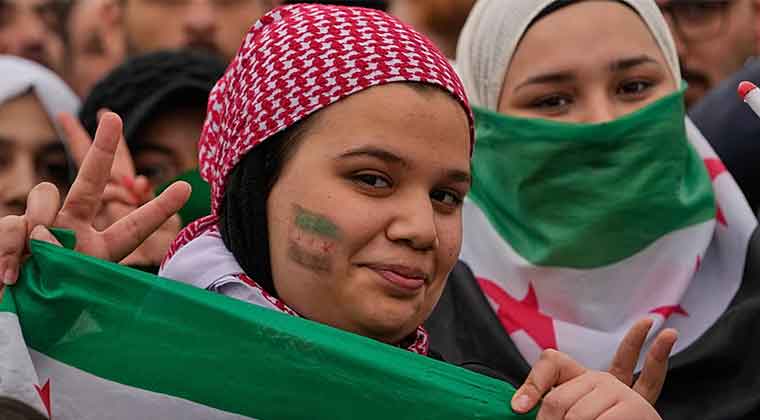 وانتشرت مقاطع فيديو على نطاق واسع تُظهر تجمعات سورية في ساحات أوروبية، رفعت العلم الوطني احتفالاً بانتهاء حكم الأسد في 8 ديسمبر 2024، بعد أكثر من 14 عاماً من الحرب.