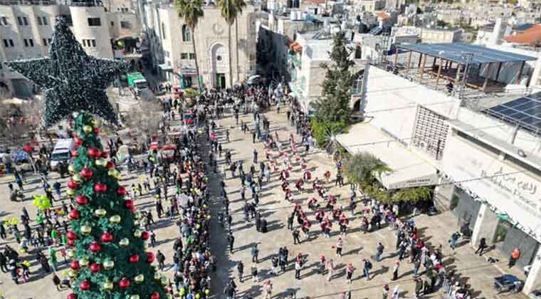وعلى غرار سائر دول الشرق الأوسط، يشكّل المسيحيون أقلية في الأراضي المقدسة، إذ لا يزيد عددهم عن 185 ألفا في إسرائيل، و47 ألفاً في الأراضي الفلسطينية. وشارك مئات الأشخاص في المسيرة التي جابت شارع النجمة الضيق المفضي إلى كنيسة المهد والساحة المؤدية لها.
