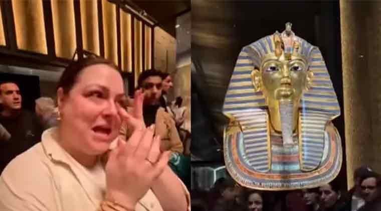 في مشهد يخطف القلوب، لم تتمالك سائحة أسترالية دموعها عند رؤيتها قناع الملك توت عنخ آمون لأول مرة في المتحف المصري الكبير. فقد كرست السائحة حياتها لدراسة علم المصريات ولأول مرة ترى ما درست شاخصاً أمام عينها فانفجرت باكية من فرط فرحتها.