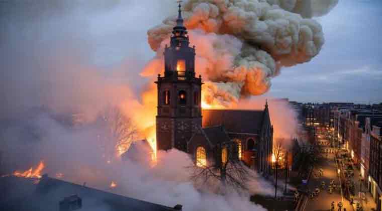 اندلع حريق واسع في كنيسة تاريخية بأمستردام مع الساعات الأولى من العام الجديد، وسط تحذيرات رسمية وإخلاء للمنازل المجاورة. اندلع حريق في كنيسة يبلغ عمرها نحو 150 عاماً في مدينة أمستردام عند منتصف ليلة رأس السنة. وبدأت النيران بعد منتصف الليل مباشرة، ما أدى إلى انهيار برج الكنيسة التي يعود تاريخ تشييدها إلى عام 1872.