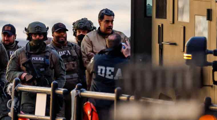 ومثل مادورو وزوجته أمام المحكمة بعد يومين من اعتقالهما في كراكاس خلال عملية عسكرية أميركية صاعقة مهَّدت الطريق أمام خطط واشنطن للهيمنة على الدولة الغنية بالنفط. وأظهرت لقطات حية عرضتها وسائل إعلام أميركية مادورو في طريقه إلى نيويورك للمثول أمام المحكمة في جلسة مقررة قرابة الظهر (17:00 بتوقيت غرينتش)، وبدا مكبّل اليدين يواكبه عدد من عناصر قوات الأمن المدججين بالأسلحة.