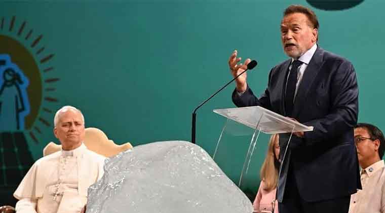 التقى شوارزنيجر بالبابا ليو الرابع عشر في كاستل غاندولفو خلال مؤتمر المناخ المحرج الذي تضمن مباركة الجبل الجليدي في أوائل أكتوبر. وقال إنه يحترم البابا ليو الرابع عشر ويعتقد أن الكنيسة لديها قوة كبيرة مزعومة للمساعدة في حماية البيئة ومكافحة التلوث.