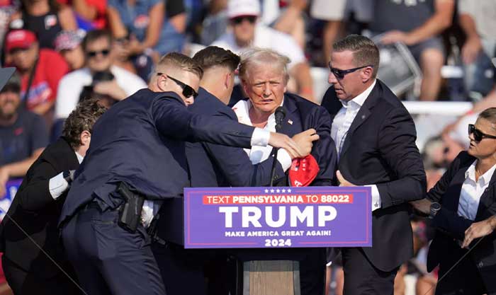 تعرض مرشح الرئاسة الأمريكية دونالد ترامب لإطلاق نار خلال تجمع انتخابي في ولاية بنسلفانيا، حيث أصيب برصاصة في أذنه. وأكد المدعي العام المحلي مقتل المسلح المشتبه به وأحد الحضور، بينما أصيب اثنان آخران بجروح خطيرة وفقًا لجهاز الخدمة السرية. وأعلنت حملة ترامب لاحقًا أنه في حالة صحية جيدة.