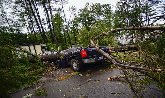 وتم إعلان حالة الطوارئ في الولاية، ووفقا لخدمة تتبع حالات انقطاع الكهرباء PowerOutage.us، لا يزال هناك أكثر من 104 آلاف مستهلك بدون كهرباء.وأفادت تقارير بأن رياحا بلغت سرعتها 128 كم / ساعة تقريبا قلبت سيارات في بلدة روم المحلية، وحطمت الزجاج الأمامي لها، ودمرت سقف وبرج الكنيسة وحركت قاذفة ضخمة من طراز B-52 من منصتها.