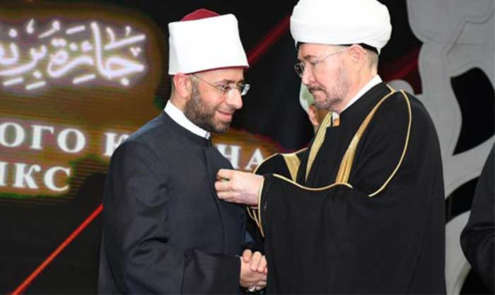 وأكد رئيس الإدارة الدينية لمسلمي روسيا الاتحادية، أن وسام الفخر للدكتور أسامة الأزهري، لدوره البارز في فتح آفاق واسعة من التعاون والعمل المشترك في المجالات العلمية والدينية والإنسانية، وما تشهده هذه العلاقات من تطور ونمو مستمر على جميع الأصعدة والمستويات.