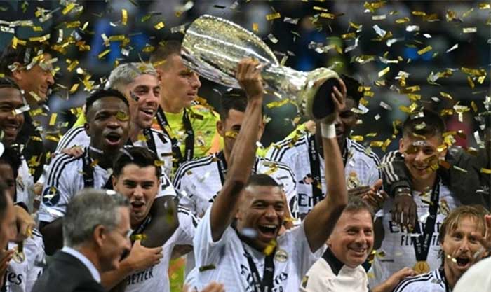بات ريال مدريد الإسباني أكثر الأندية الأوروبية تتويجا بلقب كأس السوبر الأوروبية لكرة القدم، بعدما أحرز الأربعاء لقبه السادس، متجاوزا بذلك غريمه التقليدي برشلونة، وميلان الإيطالي بخمسة ألقاب لكل منهما. وأحرز ريال مدريد لقبه الجديد، بعد تغلبه على أتلانتا الإيطالي بـ2-0، سجل أحدهما الوافد الجديد النجم الفرنسي كيليان مبابي.