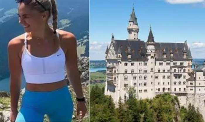 وتقع قلعة نويشفانشتاين على قمة جبل، وحاولت اللاعبة التقاط أفضل صورة مع القلعة وتعرضت للسقوط.