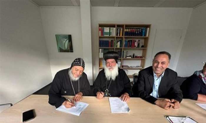 حضر توقيع العقد إلى جانب نيافة الأنبا دميان الراهب القمص جرجس المحرقي وكيل مطرانية شمالي ألمانيا، والمستشار القانوني الدكتور سامح إسكندر وتماڤ أكساني رئيسة دير الشهيد مارجرجس للراهبات بألمانيا