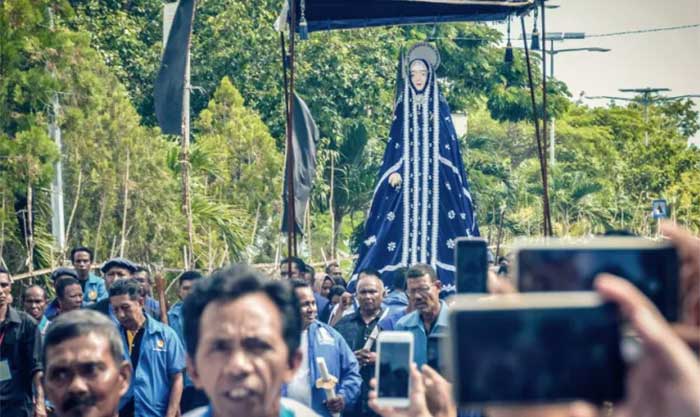 وعندما وصل المبشرون الدومينيكان البرتغاليون بعد نحو 50 سنة، وجدوا تمثالًا خشبيًّا للسيدة العذراء في مزارٍ محلّي. فنظّموا أول مسيرة تحت اسم «توان ما» (أي أمّنا مريم باللغة الإندونيسية) في خلال أسبوع الآلام. ويستمرّ هذا التقليد حتى يومنا.