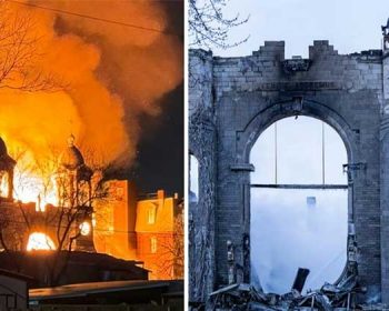 كنيسة كندية تحوّلت إلى أنقاض بعد حريق هائل
